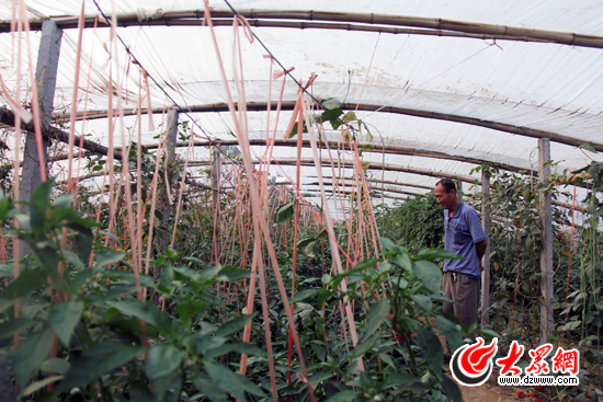 楊光順家拱棚內的辣椒已經開始成熟。記者 姜洋 攝