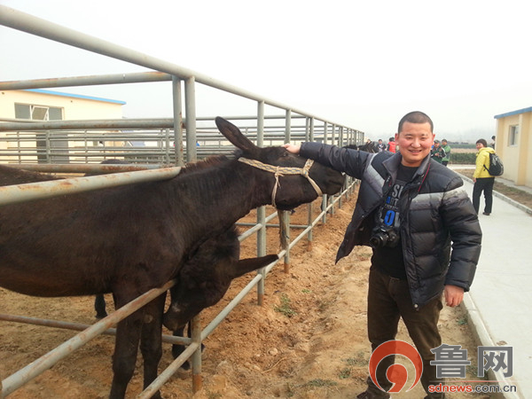 魯網(wǎng)11月21日訊(記者 劉梅婷)若您曾看過(guò)當(dāng)代著名中國(guó)畫(huà)家黃胄的毛驢畫(huà),或許會(huì)被那一幅6.9米的畫(huà)卷中或低頭、或昂首、或疾跑、或蹦跳的46頭毛驢的栩栩如生而拍案叫絕,但您要是真見(jiàn)了實(shí)物,可能又會(huì)和小伙伴們一同驚呆……今天下午,“品味山東——全國(guó)名博齊魯行”采風(fēng)團(tuán)成員們走進(jìn)了中國(guó)黑毛驢繁殖中心,一進(jìn)門黑毛驢便“興沖沖”躍躍欲試與大家合影留念,它的高大威猛形象似乎折煞了眾人,名博們瞬間陷入這股來(lái)自“驢友們”的熱情迎接中,與它們來(lái)了一場(chǎng)零距離親密接觸。