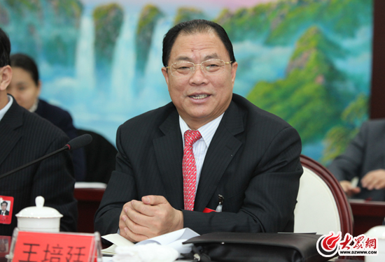 2月13日,威海市委書記王培廷在分組審議政府工作報(bào)告中談惠民生問題。
