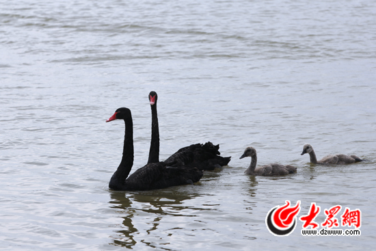 保護區棲息的黑天鵝在濕地中覓食嬉戲。