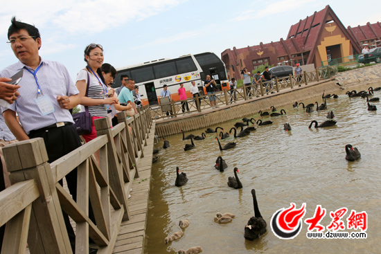 采訪團記者們前往保護區內的鳥類放飛中心參觀。