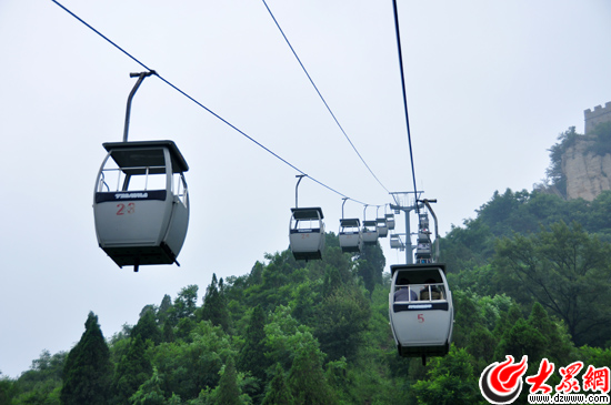 景區纜車直通崮頂,游客們可借此一覽崮群奇特景觀。