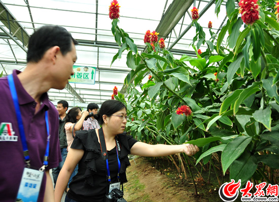 南線采訪團記者對觀賞姜花很感興趣。(大眾網記者 熊戈措 攝)