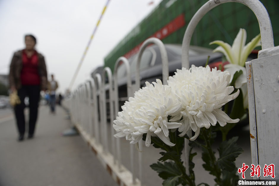 10月13日,北京民眾前往石景山消防支隊,悼念因撲救喜隆多商場火災而犧牲的兩名山東籍消防戰士劉洪坤和劉洪魁
