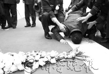 劉洪坤的弟弟在劉洪坤遺體前長跪不起,失聲痛哭。