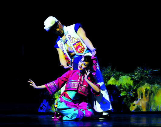10月15日、16日,作為文華獎參評劇目,陜西省歌舞劇院排演的大型原創(chuàng)歌舞音畫《金格燦燦彩》在濰坊上演(上圖)。