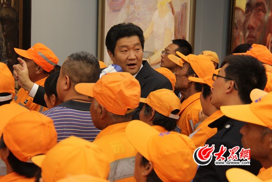 昨天下午,近2000名濟南環衛工人來到山東省美術館參觀全國優秀美術作品展,館長徐青峰客串“講解員”進行了約1個半小時的全程講解,讓很多觀展的環衛工人連說“意外”。據了解,幾乎所有的特殊觀眾群體,徐青峰都會親自講解。觀展結束后,徐青峰接受大眾網記者采訪時表示,審美是每個人的權利,自己要對美術館傳遞的“美”負責。