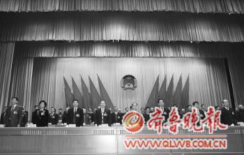 ▲市政協十一屆二次會議現場,國歌奏起,全體起立。 本報記者 姜文潔 攝