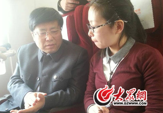 全國政協(xié)委員孔維克在火車上接受記者采訪。