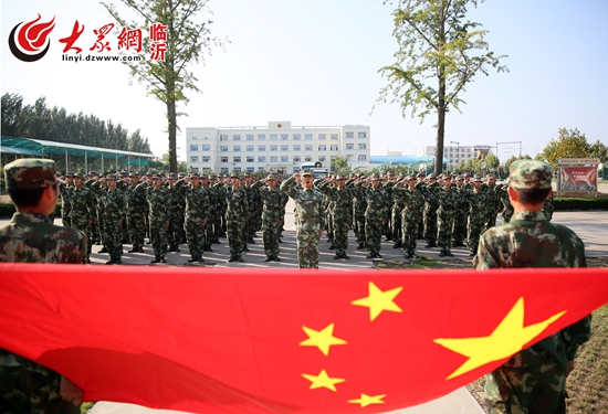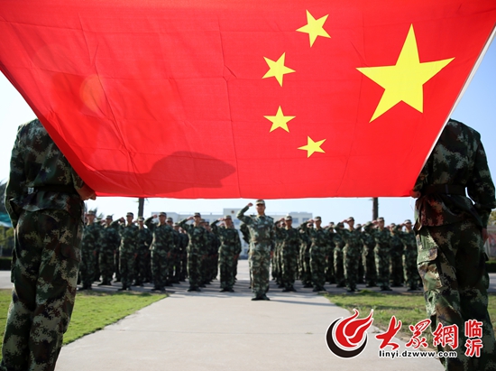 10月1日,武警臨沂支隊剛入伍新兵與國旗合影,為中國點贊