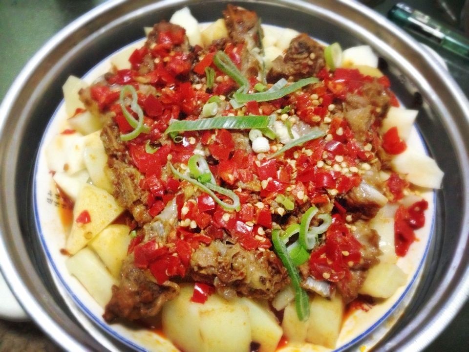 而今,媽媽似乎也不甘心于只做做面食給我吃的水準(zhǔn),在家用手機研究怎么做肉菜,無奈天賦使然,廚藝方面依舊未見太大起色。可不料有天媽媽神神秘秘的給我端出一屜蒸菜,好家伙,還是剁椒排骨。一邊端給我,還一邊埋怨,說少吃辣椒,對身體不好。而這道菜,又成了我新晉的最愛,不需復(fù)雜的工藝,沒有復(fù)雜的配料,簡簡單單,卻是依足了我的口味。