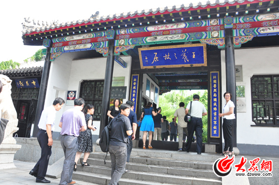 今天上午,媒體行南線采訪團來到一代書圣——王羲之的故居。王羲之故居以其濃郁的文化氣息打響了臨沂市的文化品牌。(大眾網記者 熊戈措攝)