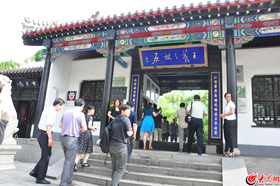 今天上午,媒體行南線采訪團來到一代書圣——王羲之的故居。王羲之故居以其濃郁的文化氣息打響了臨沂市的文化品牌。(大眾網記者 熊戈措攝)