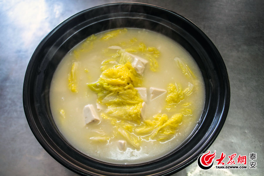 范方偉還告訴記者,做“三美湯”最關(guān)鍵的還是水,而這水,須得是泰山上的泉水,用泰山泉水燉成雞湯,冷卻澄凈之后做成的吊湯,才“配得上”湯中的白菜和豆腐。