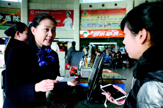1月3日,濟南長途汽車總站旅客熙熙攘攘,春運氣息漸濃。在車站總服務臺,雙語站務員單笑嬌微笑著為旅客服務。
