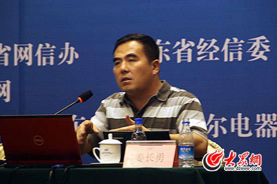 大眾網(wǎng)副總經(jīng)理、大眾信息產(chǎn)業(yè)有限公司總經(jīng)理姜長勇做了題為《大數(shù)據(jù)時代的輿情應(yīng)對和電子政務(wù)》的發(fā)言。
