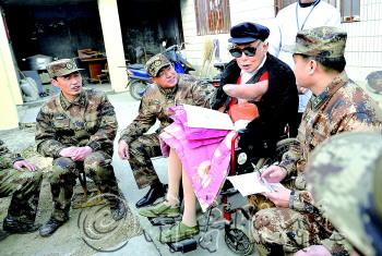 1月14日,朱彥夫同來看望他的淄博預備役工兵團官兵暢談理想與信念。大眾日報記者 房賢剛 攝