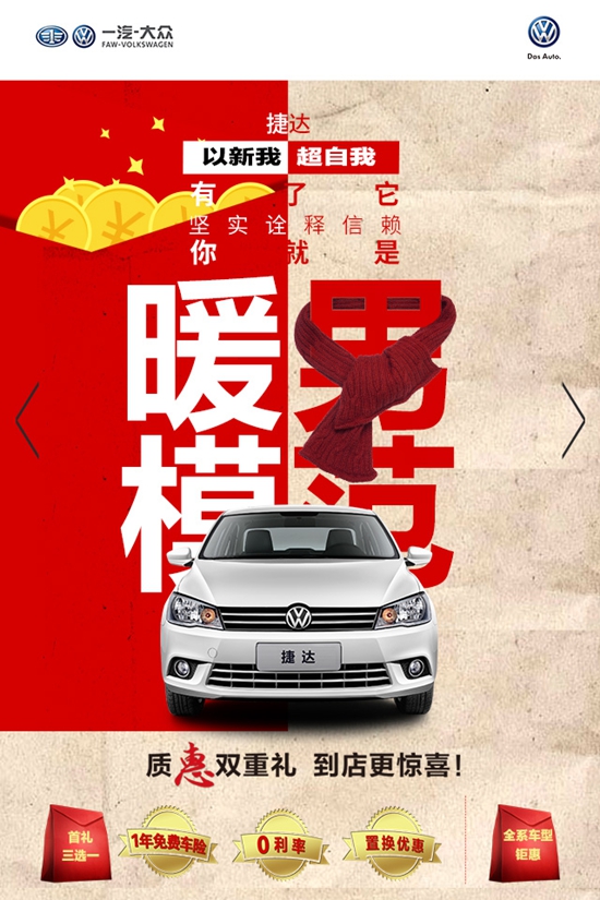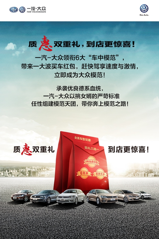 6月12日-14日,“壹生壹世 相約與你” ,濟南市民將在世茂國際廣場迎來2015年夏天最浪漫甜蜜的盛宴。一汽-大眾山東首佳汽車銷售服務(wù)有限公司收到大眾網(wǎng)的邀約參展,一汽-大眾全系六大車型、7萬元-30萬元左右的價格分布,讓您的甜蜜愛情生活一步到位。