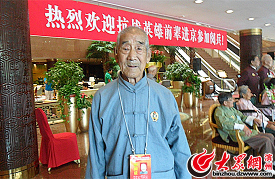 大眾網(wǎng)濱州9月1日訊(記者 于淋凡 王君彩)在參加紀念抗戰(zhàn)勝利70周年大閱兵的老兵方陣中,有一位來自濱州市博興縣呂藝鎮(zhèn)的范康桂老人。閱兵當天,老人將身著統(tǒng)一的盤扣布衫作為抗戰(zhàn)支前模范方陣的一員乘車接受檢閱,作為一名16歲就投身抗戰(zhàn)的老兵,接到閱兵通知后老人無比激動,也成了全村人的驕傲。
