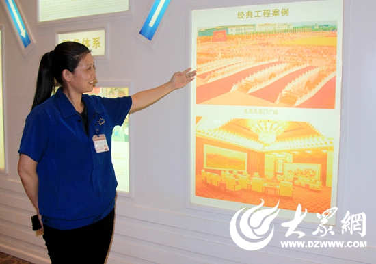 據(jù)東升地毯集團(tuán)辦公室主任王秀芬介紹,60年國(guó)慶時(shí)天安門金水橋鋪設(shè)的也是東升地毯集團(tuán)生產(chǎn)的地毯(大眾網(wǎng)記者 張麗 攝)