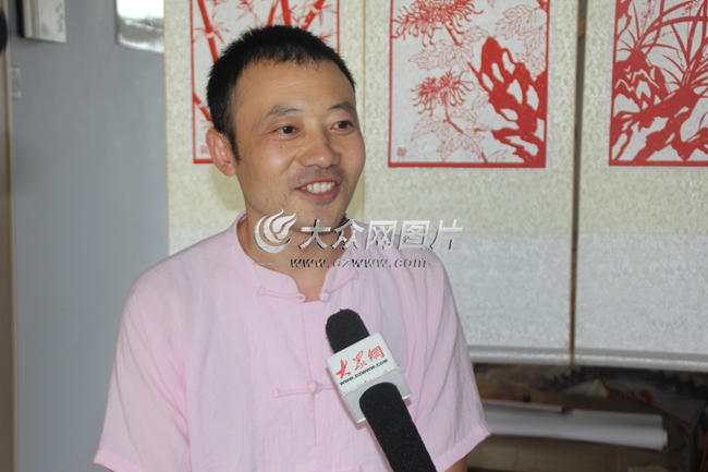 國家級非物質文化遺產(chǎn)剪紙項目傳承人李金波接受大眾網(wǎng)記者采訪。