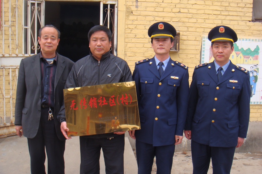 2010年4月22日,聊城冠縣工商局執法人員給徐三里村“無傳銷村”掛牌。