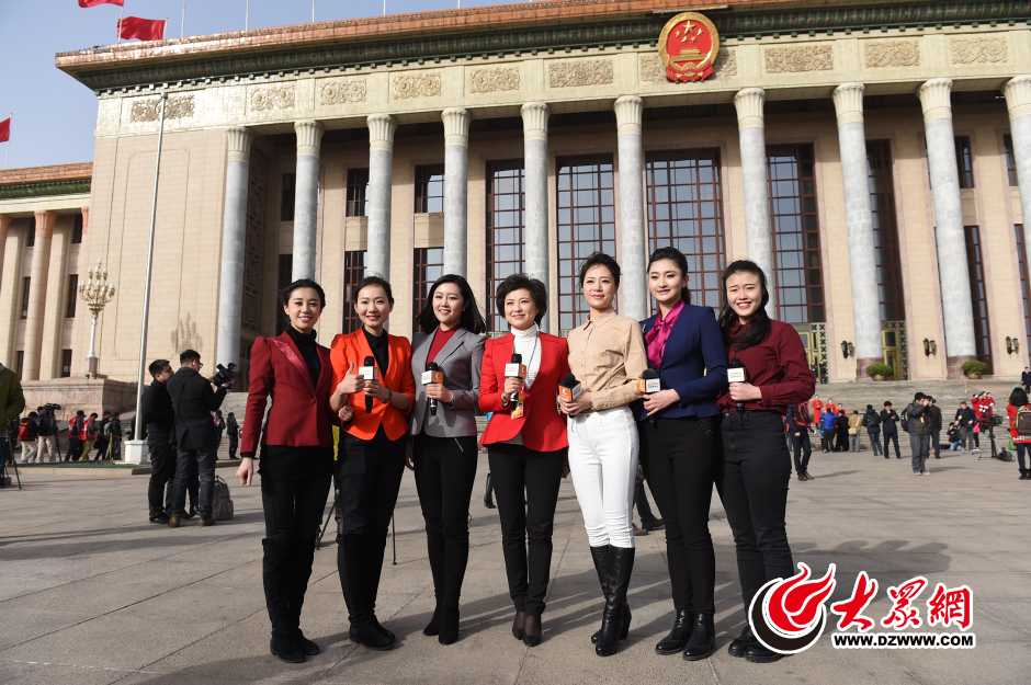 在人民大會堂外,各個單位的女主播們形成了看點。(大眾網特派記者 王長坤 攝)