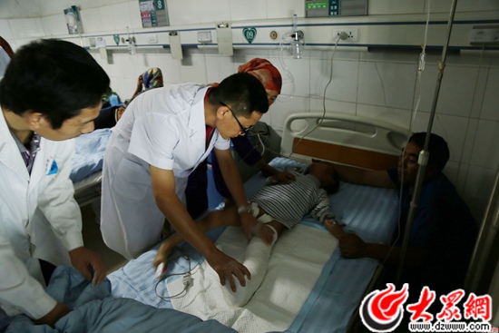 當?shù)蒯t(yī)院醫(yī)護人員與山東醫(yī)療專家一起進行手術(shù)。