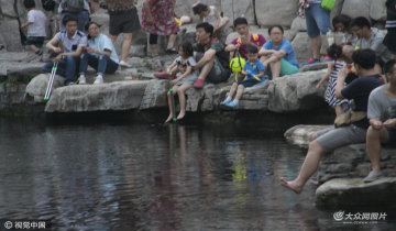 濟南黑虎泉變“泡腳池” 游客泡腳消暑