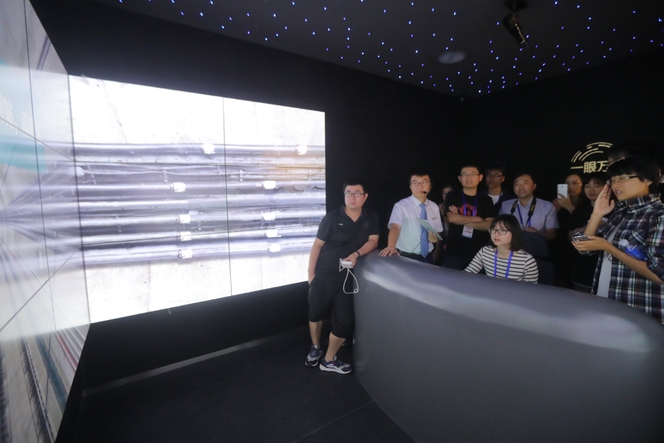 采訪團記者掃描二維碼進入青島地鐵展示館。
