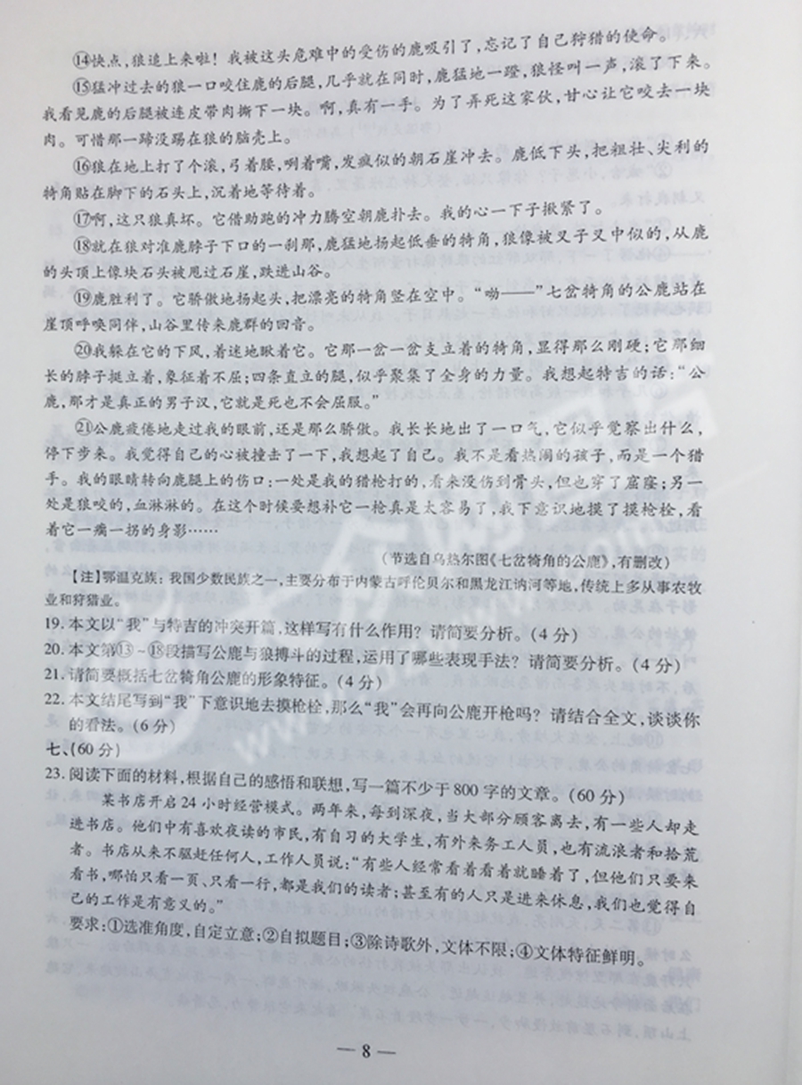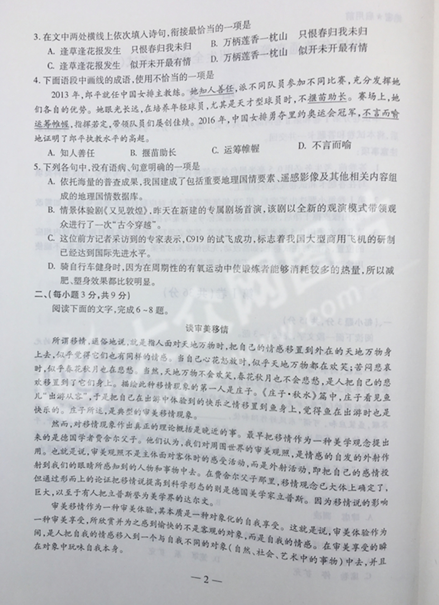 2017年山東高考語(yǔ)文試題及答案