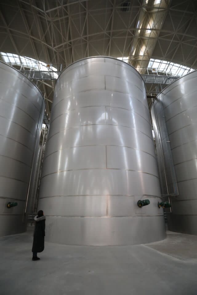 生產車間內的發型葡萄酒容器。