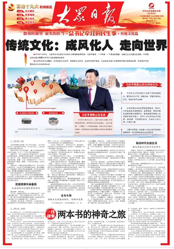 10月14日,大眾報業(yè)集團推出“喜迎十九大”大型系列融媒體報道《殷切的希望 最實的擔當·總書記牽掛的民生事》“傳統(tǒng)文化篇”,引起讀者和網友的強烈反響。“大眾日報傳統(tǒng)文化的主題報道整體氣勢恢宏,全景式展現了山東弘揚優(yōu)秀傳統(tǒng)文化的擔當和作為。 [詳細]