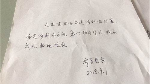 9月2日清晨,剛剛從該校撤離的濟寧消防官兵們,給同學們留信說,“人生重要的不是所站的位置,而是所朝的方向,愿你勤奮,早日成才,報效祖國……”