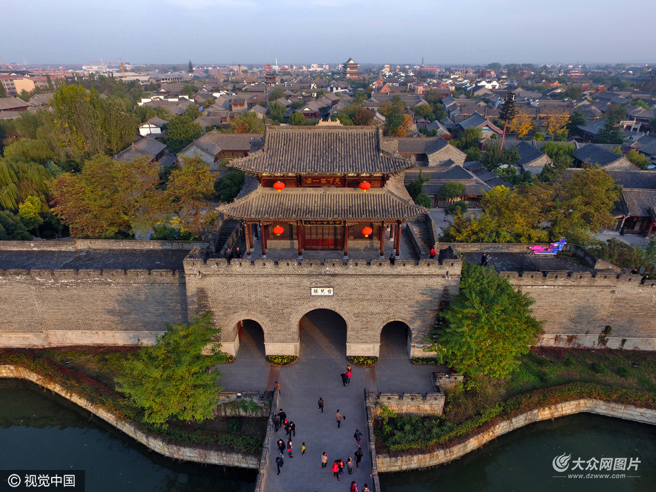 山東省棗莊市,航拍臺兒莊。