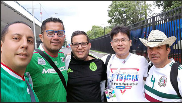 特派記者與球迷合影