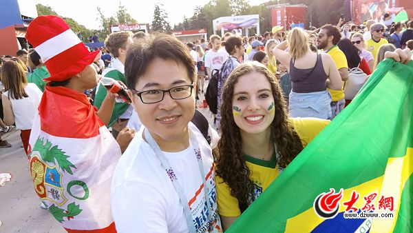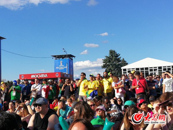 特派記者王封攝影報道 當(dāng)?shù)貢r間下午五六點,正是太陽毒辣的時候。在世界杯莫斯科球迷廣場,巴西與墨西哥球迷觀看比賽。