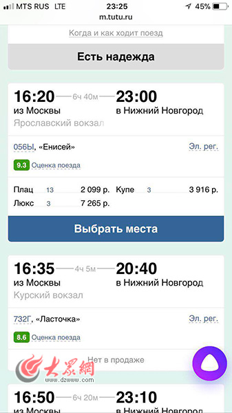 莫斯科當(dāng)?shù)貢r(shí)間6月20日深夜,購(gòu)票網(wǎng)站顯示,莫斯科去往下諾夫哥羅德的車票已經(jīng)售罄。