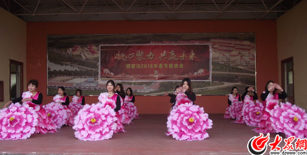 村民在郭家溝春節(jié)聯(lián)歡活動上表演舞蹈
