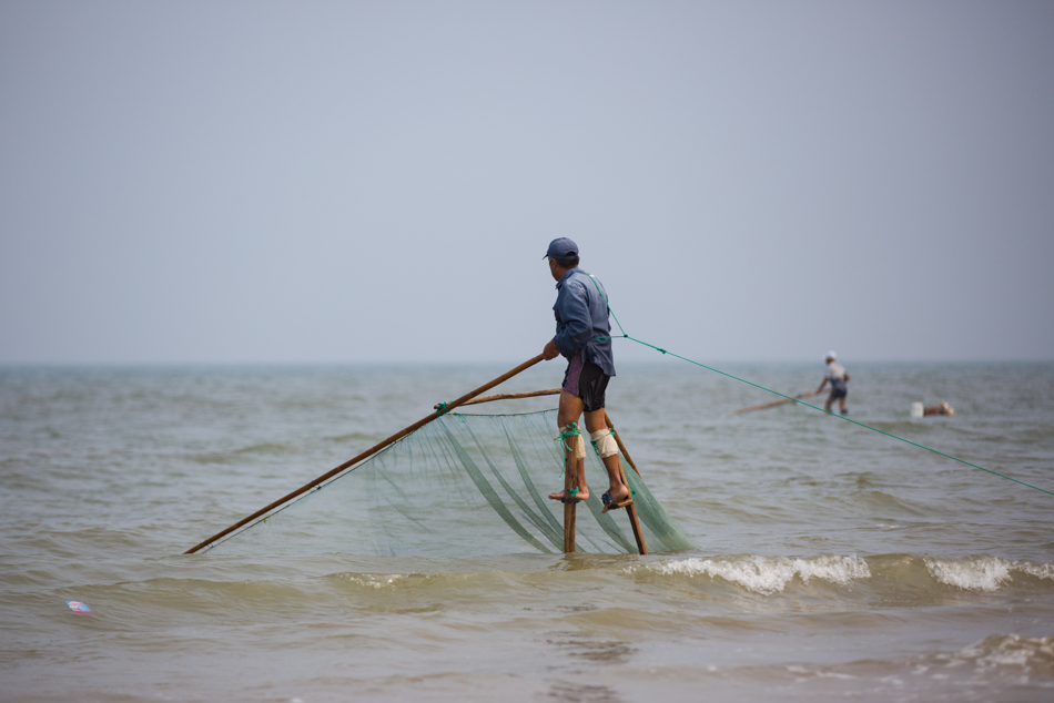 【我愛這片藍色的國土】罕見!日照有人竟在海里踩高蹺捕蝦皮