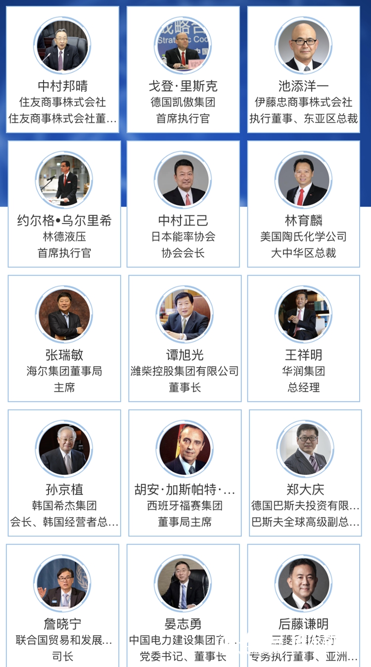 從嘉賓層級來看,境外世界500強中國區(qū)副總裁以上級別嘉賓138人,其中全球總裁5人、副總裁19人,中國區(qū)總裁級46人、副總裁級68人;境內(nèi)世界500強全球副總裁以上級別嘉賓20人,其中全球總裁11人、副總裁9人;境外全球行業(yè)領(lǐng)軍企業(yè)中國區(qū)總裁以上級別嘉賓205人,其中全球總裁79人、副總裁52人,中國區(qū)總裁級74人;境內(nèi)行業(yè)領(lǐng)軍企業(yè)副總裁以上級別嘉賓86人,其中總裁48人、副總裁37人;特邀嘉賓21人,其中外國前政要2人,國際組織代表4人、知名商協(xié)會代表10人、知名學(xué)者5人。