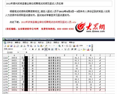 近日,有網(wǎng)友在大眾論壇爆料稱,德州市武城縣2012年事業(yè)單位招聘筆試總成績(jī)及面試人員公布,其中,一位考生以9分的筆試成績(jī)進(jìn)入了面試環(huán)節(jié)。武城縣事業(yè)編...