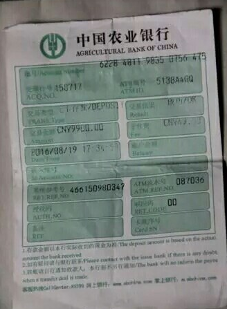 徐玉玉被騙時的銀行匯款記錄