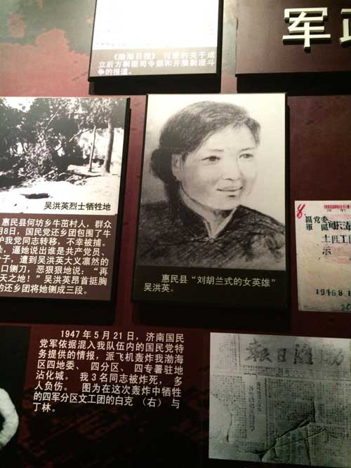 五萬五千三百零八個,夠多了吧?可實際上,為了支援這些已經犧牲的,和那些還在繼續戰斗的戰士,濱州作為大后方,老百姓們還要出軍糧,幫忙養傷員,人背肩扛,用獨輪車組成特色的后勤體系……請注意,這里不是大山大川,這里是一望無際的平原,這里很多土地都是鹽堿地,也長不出茂密的森林,在這樣的條件下,能夠頂住日本鬼子左一年右一年的掃蕩掃蕩再掃蕩,是談何容易的事情。更何況,我們這邊又從來都不缺漢奸,太平盛世如當下,還有數不清的公知再變相賣國,想當年能缺這種人嗎?整個參觀過程,印象最深刻的是偽軍還鄉團,瘋狂反撲的時候,真的就把我們的革命群眾當街拉出來,用鍘刀鍘成三四段。我看介紹上寫的是“劉胡蘭式的女英雄”,仔細一問才知道,這位名叫吳洪英的女烈士,犧牲的時候,要比劉胡蘭還早一年多。就是為了保護我們革命事業,寧死不屈,即便尸骨不全,也絕不反悔。