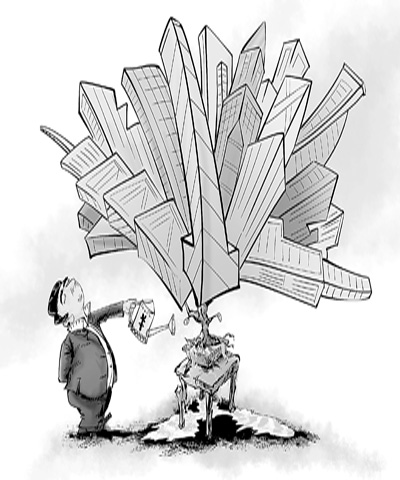 有報告顯示,截至2012年我國已有470座摩天大樓,在建的還有332座,預計2022年總數將達1318座,是美國的2.5倍,其中80%將建在中小城市。這股高樓建造的狂潮,正席卷大江南北。“暴發戶”式的建設沖動也引發了公眾對爛尾、虧損、工程質量、消防安全、無用空間等“高樓病”的種種擔憂。