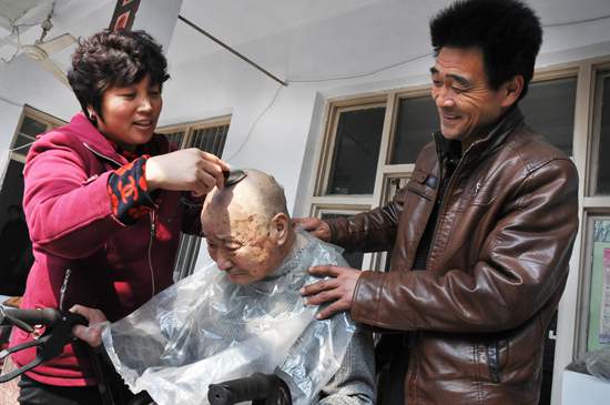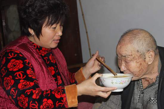 在張洪燕的精心侍候下,老人過上了正常的生活。2008年冬天,老人的兒子病情愈發(fā)嚴(yán)重,最終不治身亡。盡管是預(yù)料之中的事,但還是給老人不小的打擊,那些天,老人常常坐在院子里發(fā)呆。臨近春節(jié)前的一天早晨,老人洗完手后不慎將臉盆打翻,繼而滑倒在地,造成了腿部粉碎性骨折,從此臥病在床,生活不能自理。