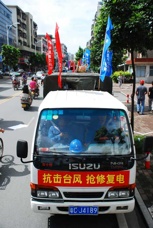 19日清晨,來自廣東電網公司珠海局赴湛支援的10個小分隊迅速向湛江東海局東簡供電所轄區挺進。8時20分,到達第一個故障區――龍騰下村。