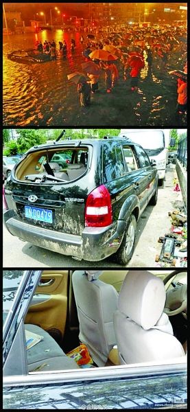 崔金波告訴揚子晚報記者,停下車后,雖是下著大雨,廣渠門旁還是圍著很多人。“聽說有車子被淹在水里了,水里有5輛車,最深的地方有2輛。”崔金波和兩名隊員立即加入了尋車救人的隊伍中。