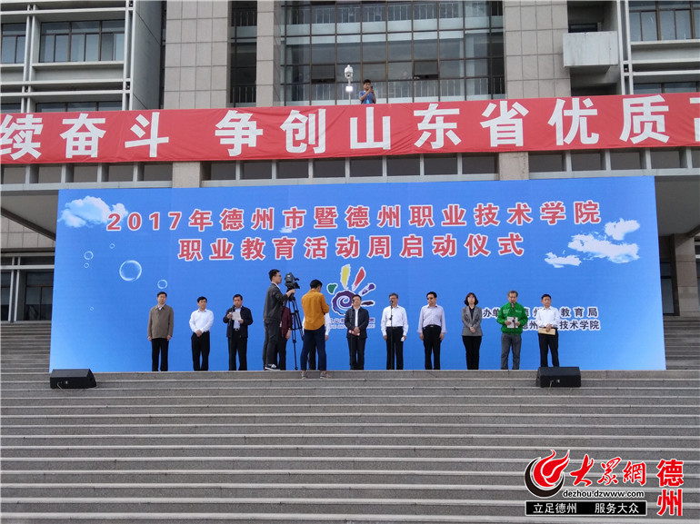 大眾網德州5月8日訊(見習記者 徐瑞)為推進德州市職業教育健康發展,加快技術技能人才培養,5月8日上午,2017年德州市職業教育活動周啟動儀式在德州職業技術學院環球廣場舉行,德州市副市長董紹輝等出席啟動儀式。