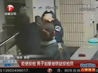 監控畫面顯示,當時,一男一女兩名乘客背著包準備進站,安檢員徐思示意兩人接受安檢,但對方始終不肯,硬闖進閘機。徐思隔著閘機拉住男子,這時,男子突然發飆,將背包交給女伴后,雙手掐住了徐思的脖子。
